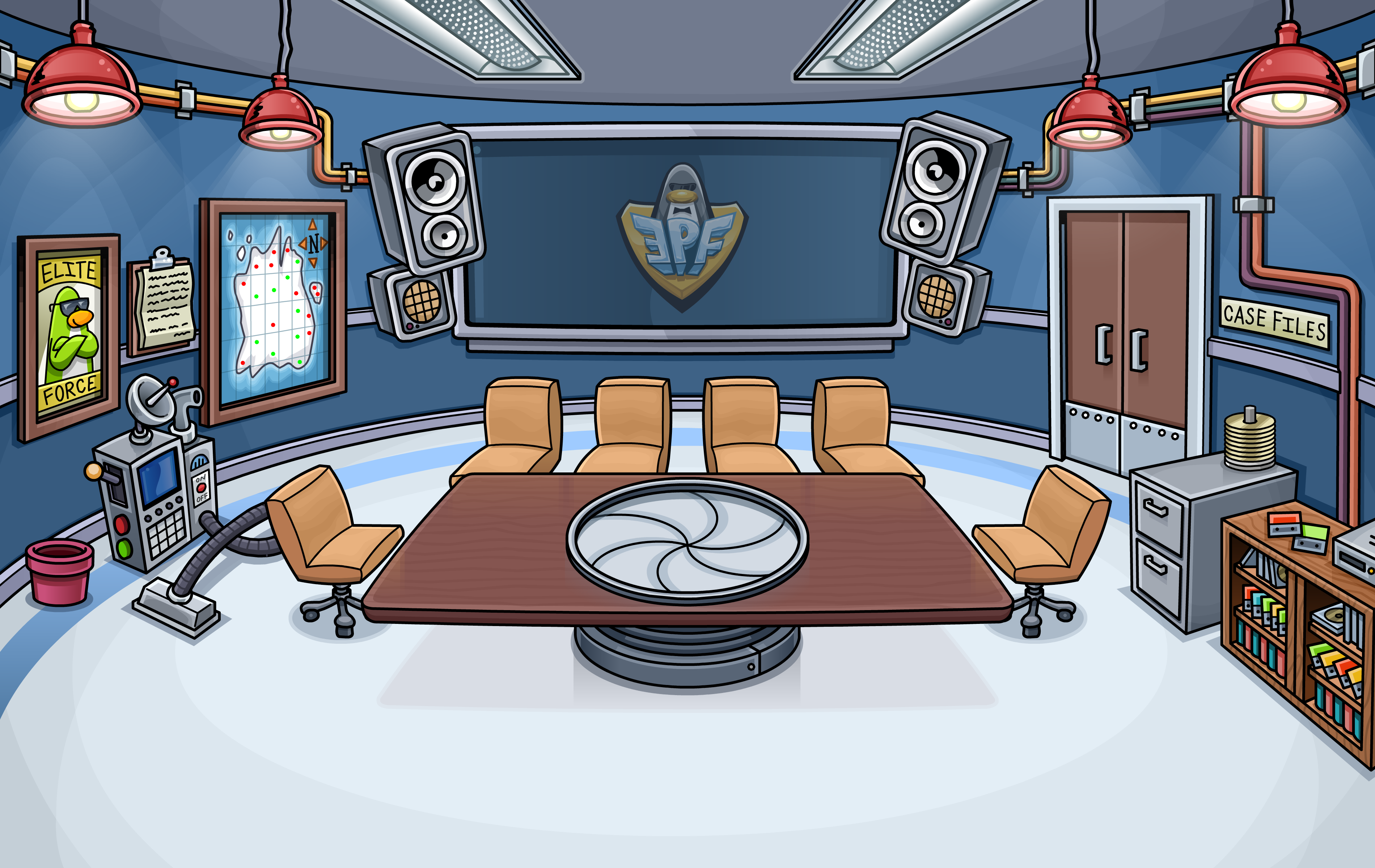 The epf command room full name elite penguin force command room was the prime base of operations for the elite penguin force here the epf conducted research trained experimented and tracked down threats to the club penguin island after the destruction of the psa headquarters this new base for agents was constructed adopting from the.